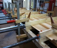 Sound sculptor Hans von Koolwijk has not been idle since our last meeting: here are the latest samples of our new Klangmøbil instruments! In these pictures we can see the sound board of a string instrument, that Hans is building with the assistance of guitar builder Thijs van der Harst. More soon!