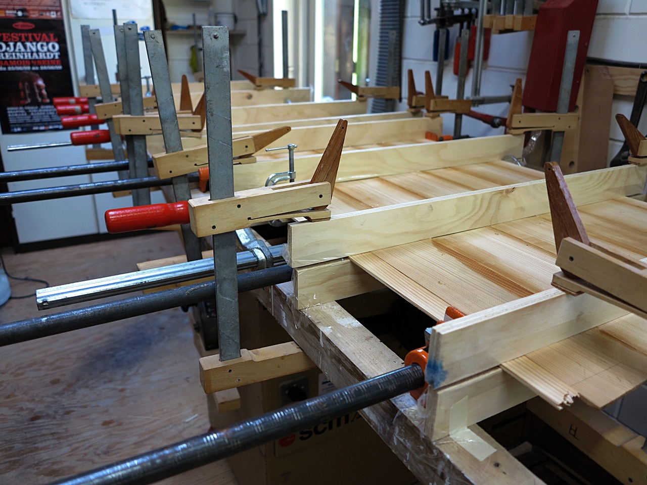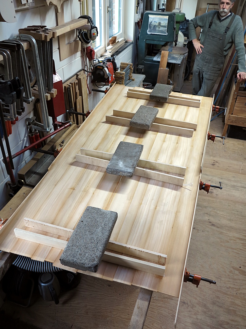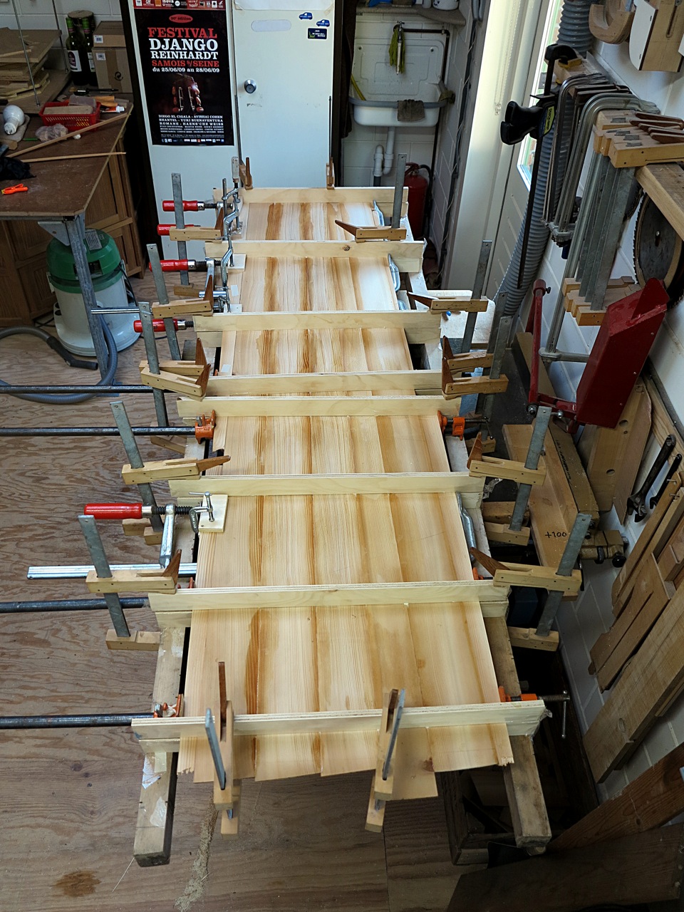Sound sculptor Hans von Koolwijk has not been idle since our last meeting: here are the latest samples of our new Klangmøbil instruments! In these pictures we can see the sound board of a string instrument, that Hans is building with the assistance of guitar builder Thijs van der Harst. More soon!